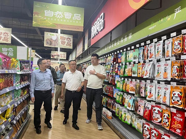 在自然貢品華商旗艦店,劉羽一行重點了解店面經(jīng)營管理模式、商品分區(qū)設(shè)置、產(chǎn)品開發(fā)銷售、供應(yīng)商合作模式、線上商城建設(shè)等方面情況,就推動打造“自然貢品”和“巴食巴適”兩個區(qū)域公用品牌集中展示展銷專區(qū)進行了交流探討。